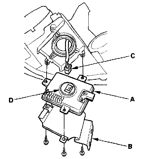 7. Disconnect the 4P connector (C) from the HID unit.