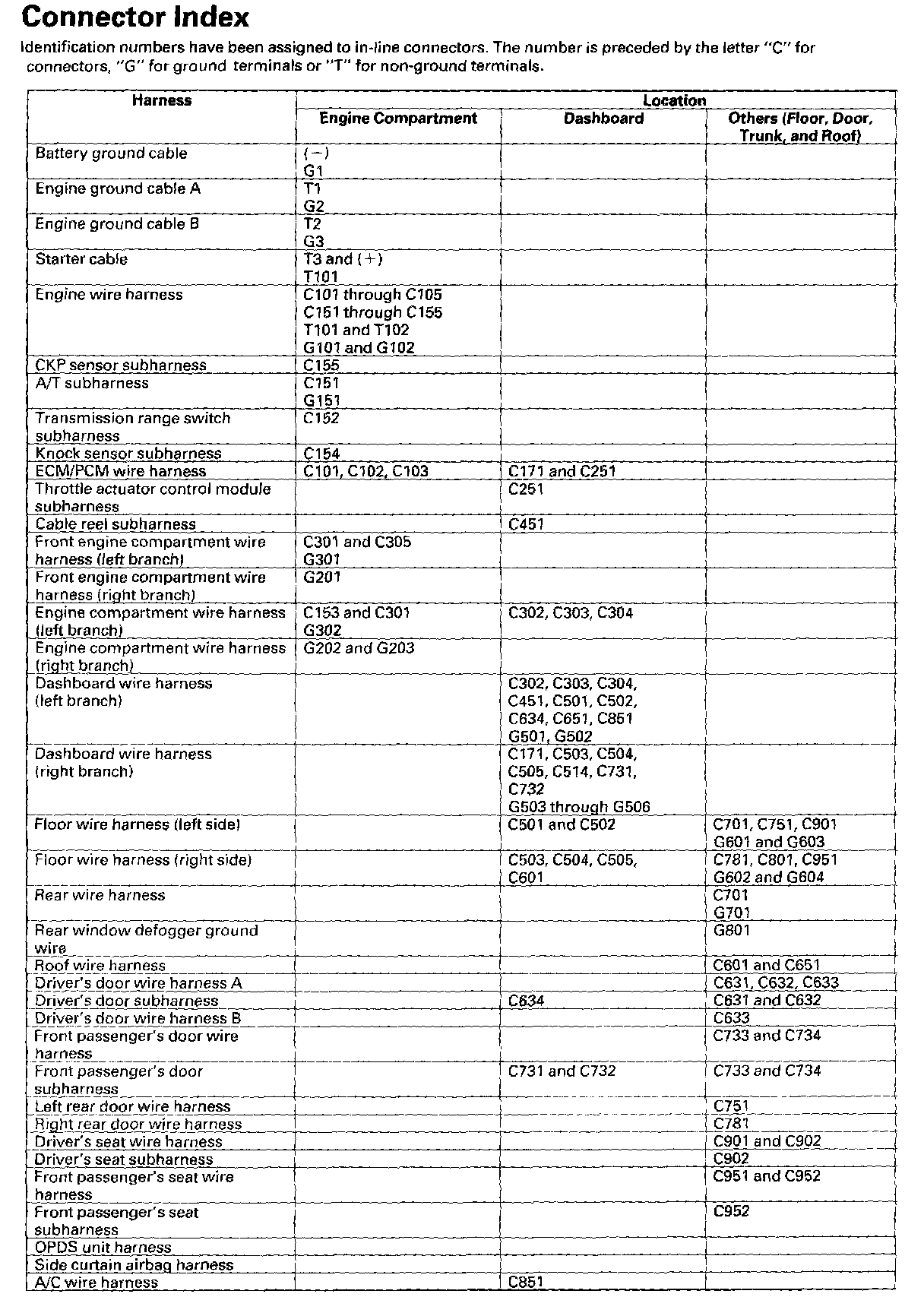 Connectors And Harnesses - Connector Index:
