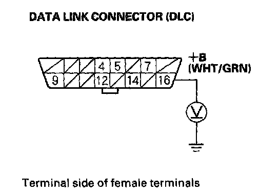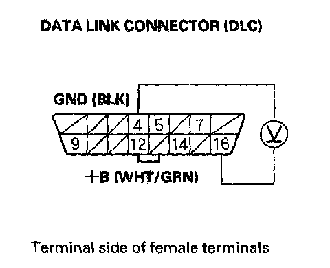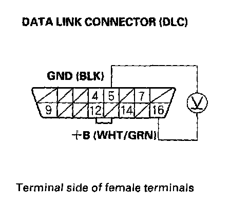 1. Measure voltage between DLC terminal No.16 and body ground.