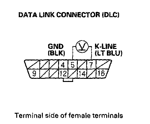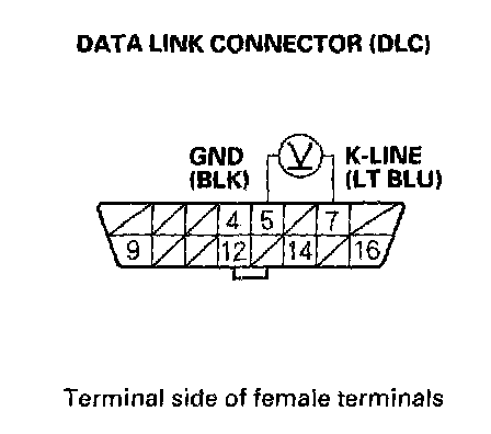 15. Measure voltage between DLC terminals No.5 and No.7.