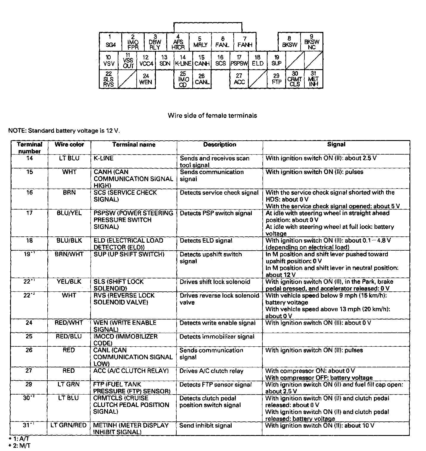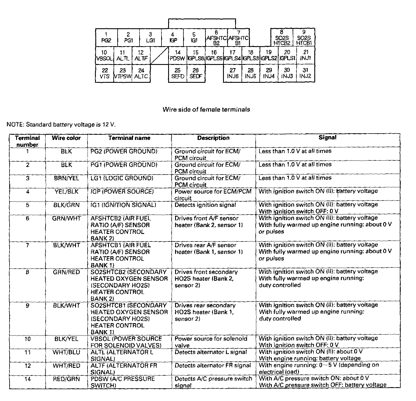 ECM/PCM Inputs And Outputs At Connector A (31P) Part 1: