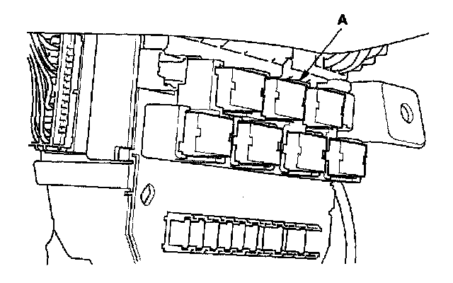 26. Remove the left kick panel, then remove the PGM-FI main relay 1 (FI MAIN) (A) from the under-hood fuse/relay box.