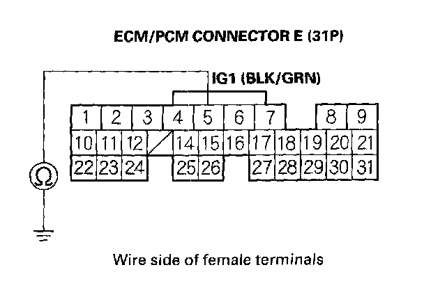 37. Check for continuity between ECM/PCM connector terminal E5 and body ground.