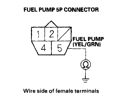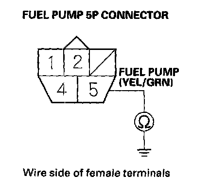 43. Check for continuity between fuel pump 5P connector terminal No.5 and body ground.