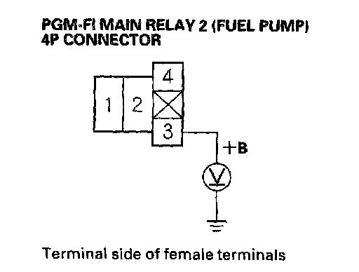 59. Measure voltage between PGM-FI main relay 1 4P connector terminal No.2 and body ground.