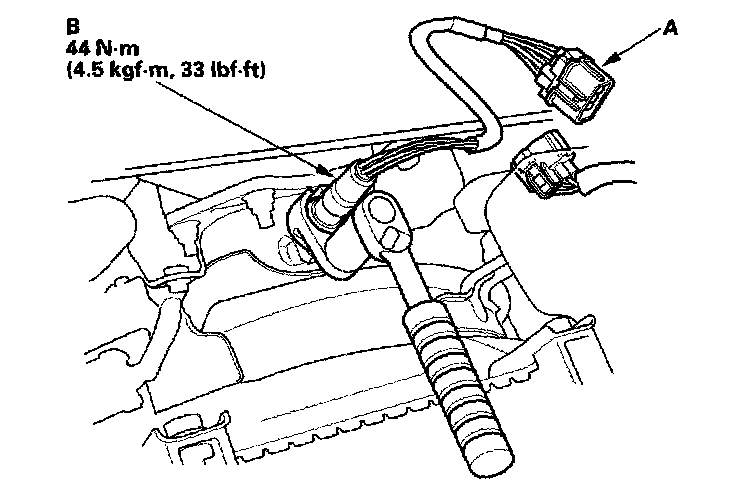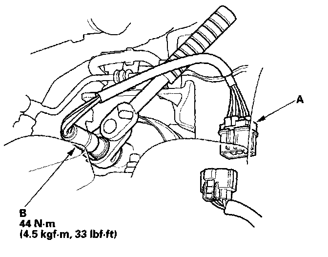 1. Disconnect the front A/F sensor 8P connector (A), then remove the A/F sensor (B).