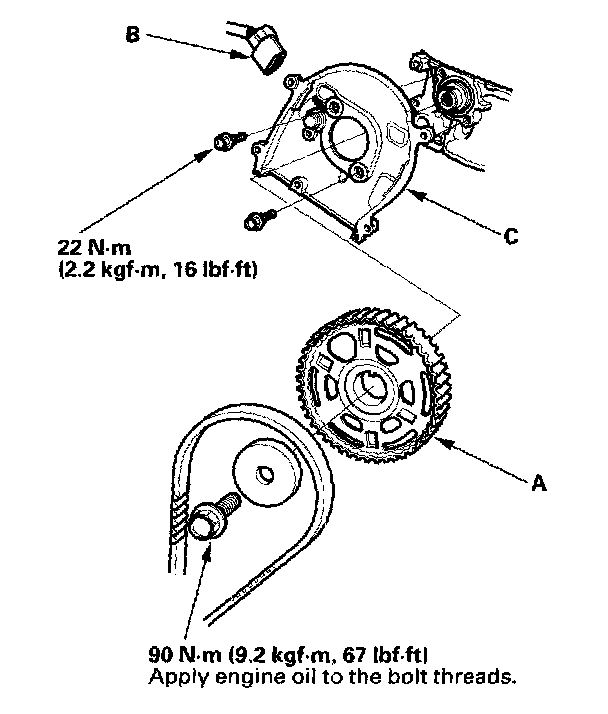 7. Disconnect the CMP sensor connector (B), then remove the back cover (C).