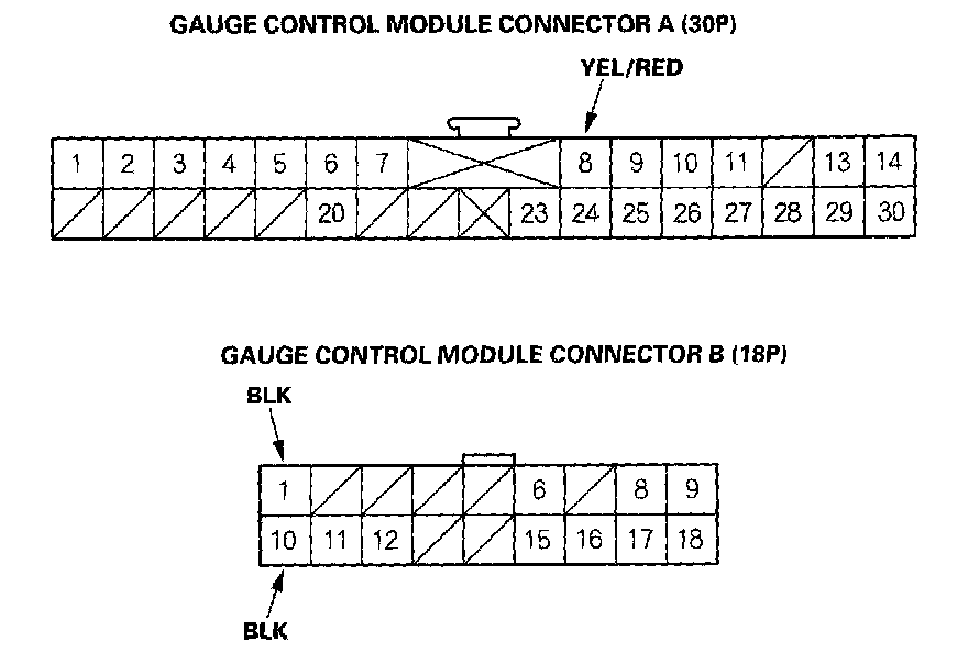 9. Disconnect the gauge control module connectors A and B.