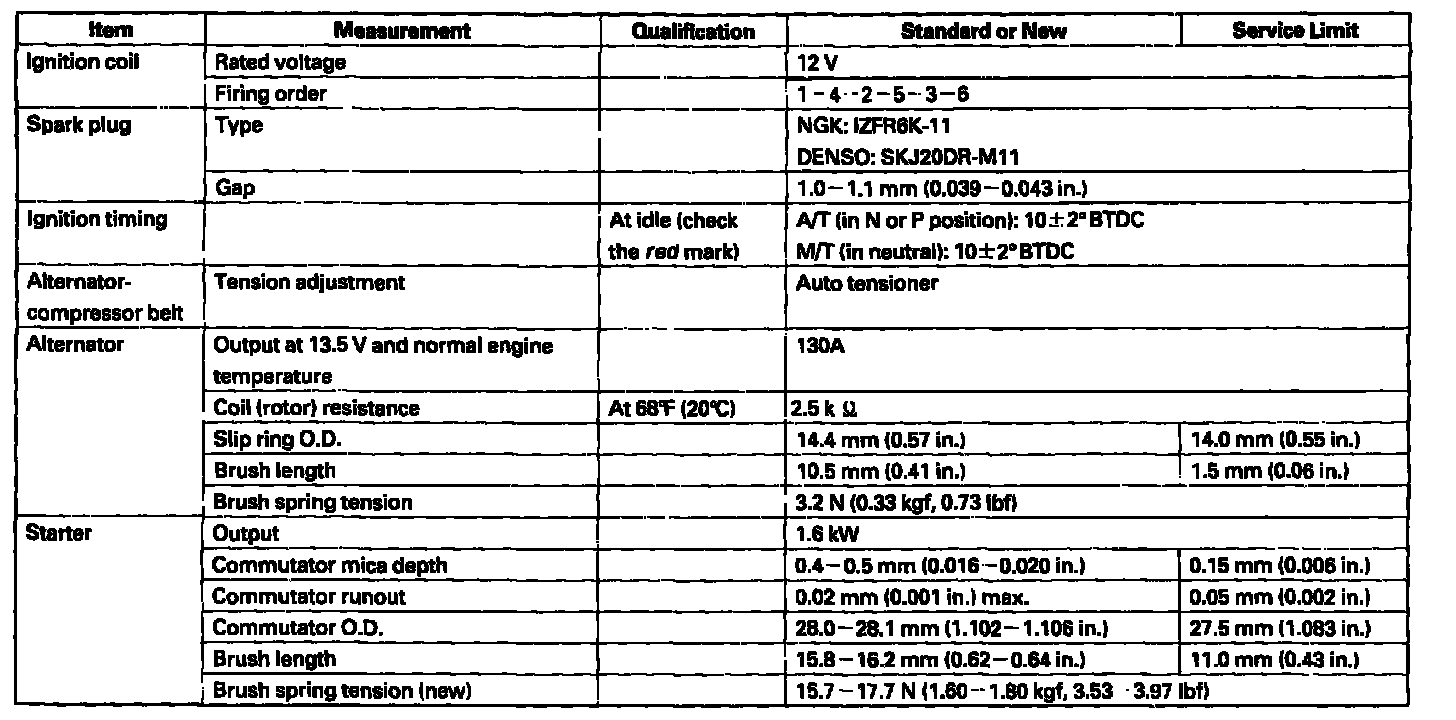 Starting and Charging: Specifications