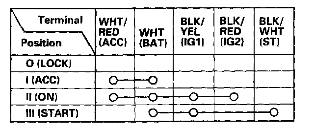 6. If the continuity checks do not agree with the table, replace the steering lock.