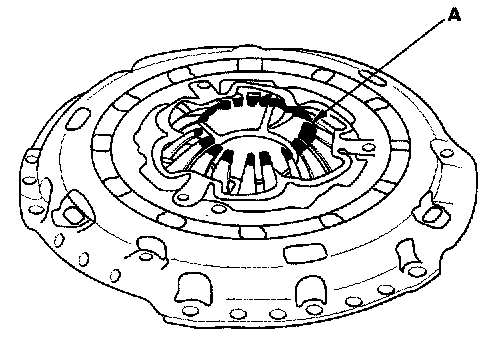 6. Inspect the fingers of the diaphragm spring (A) for wear at the release bearing contact area.