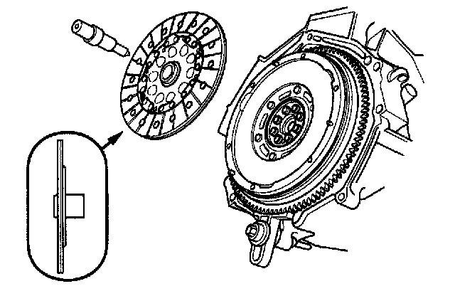 1. Temporarily install the clutch disc onto the splines of the transmission mainshaft. Make sure the clutch disc slides freely on the mainshaft.