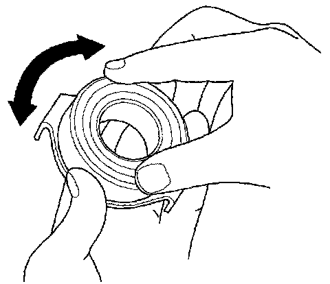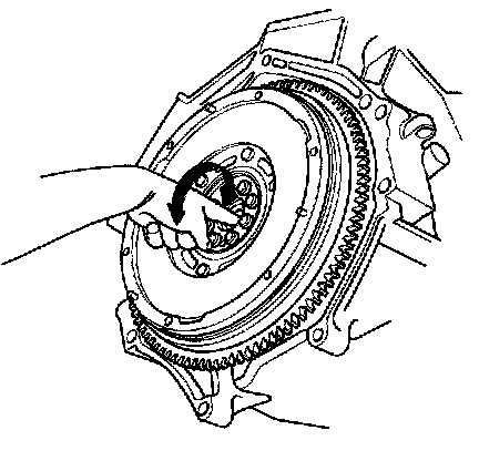 4. Turn the inner race of the pilot bearing with your finger. The pilot bearing should turn smoothly and quietly. Check that the pilot bearing outer race fits tightly in the flywheel. If the race does not turn smoothly, quietly, or fit tight in the flywheel, replace the pilot bearing.