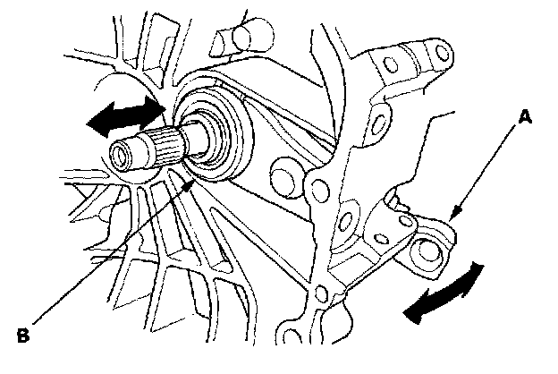 8. Move the release fork (A) right and left to make sure that it fits properly against the release bearing (B) and that the release bearing slides smoothly. Wipe off any extra grease.
