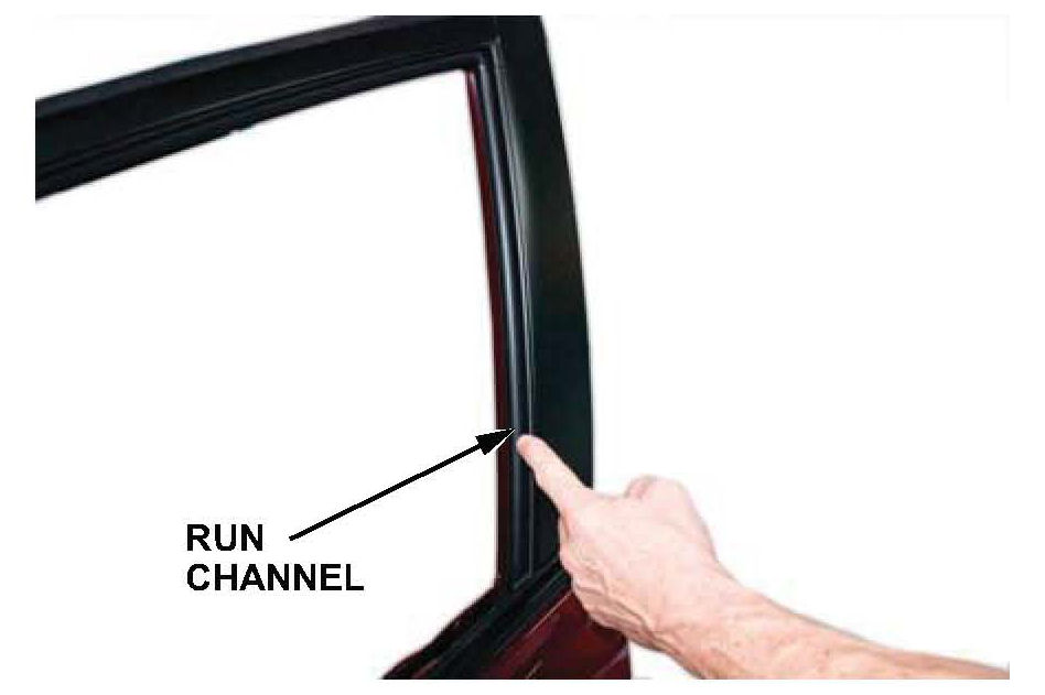 4. Inspect the run channel alignment, both inside and outside the door. Pay close attention just below the door skin; this is a common area for the run channel to be pinched.