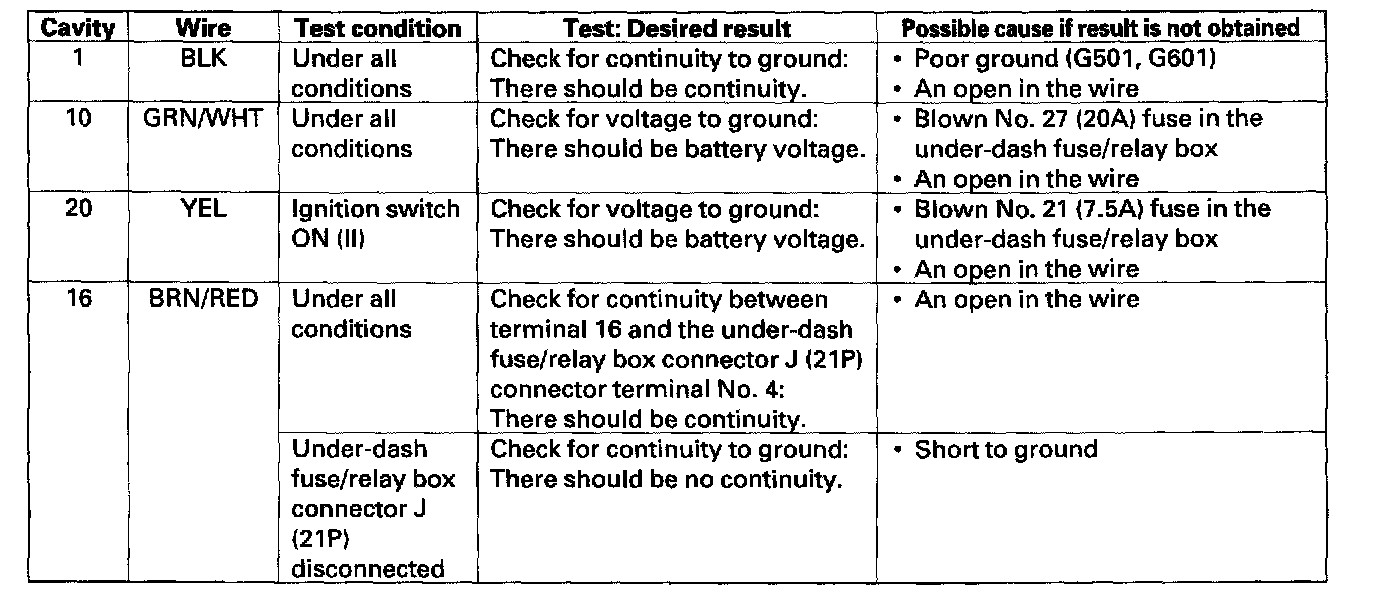 4. With the door multiplex control unit still disconnected, make these input tests at the connector.