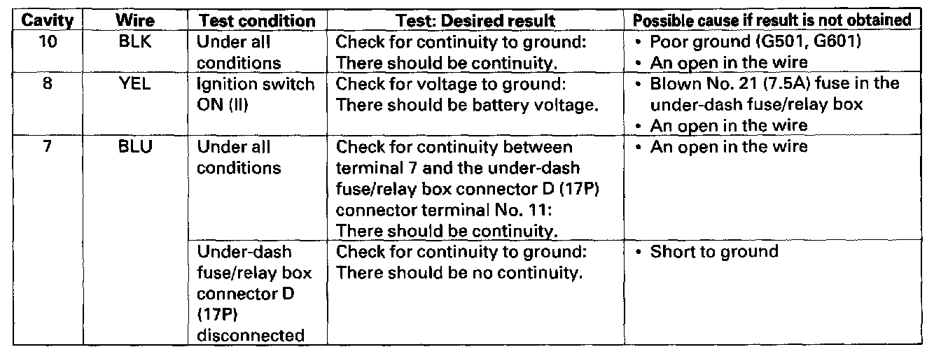 - If all the input tests prove OK, the relay control module must be faulty, replace the under-hood fuse/relay box.
