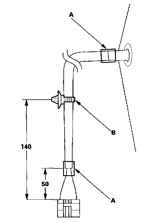 2. Cut the wire harness (A), tube (B) with cutter, and remove the clip (C).