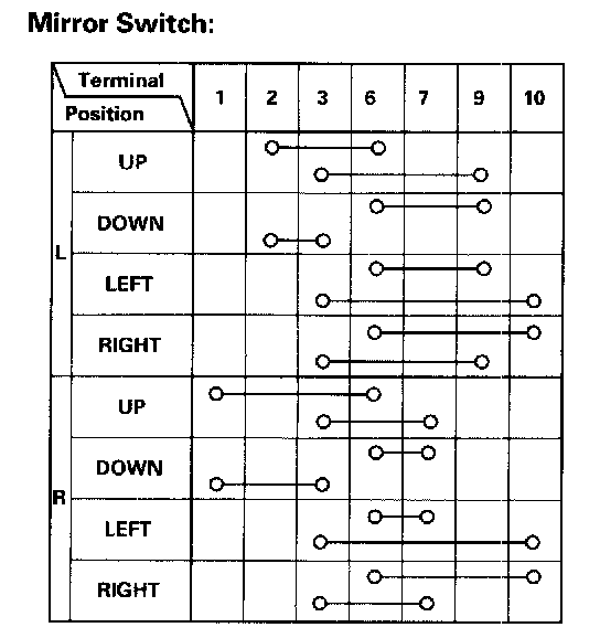 Power Mirror Switch: Testing and Inspection