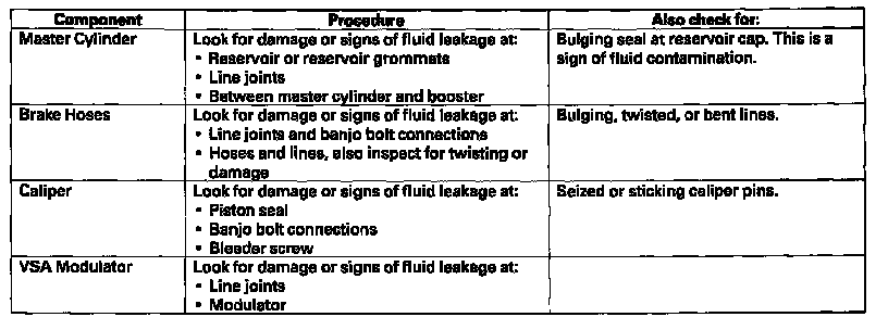 NO - Look for a bulging master cylinder cap seal, discolored or contaminated brake fluid in the master cylinder, or damaged brake lines. If any of these items are damaged, replace them. If all of these items are OK, replace the VSA modulator.