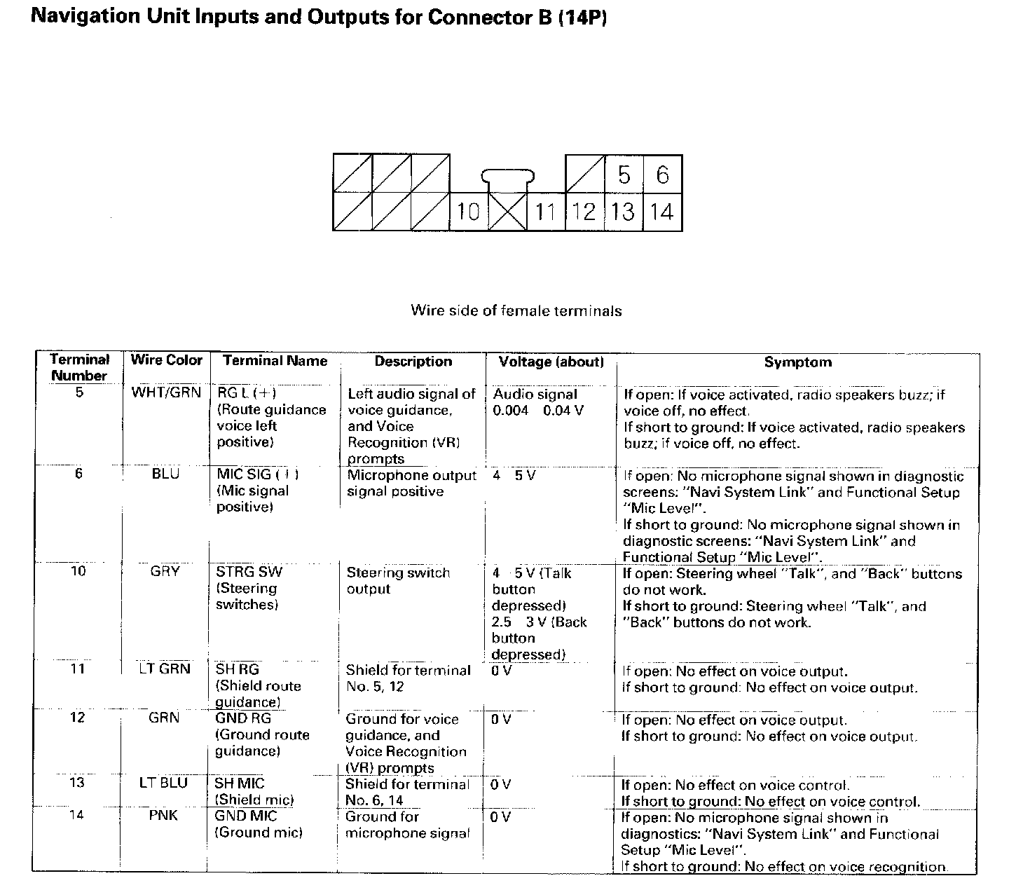 Navigation Unit Inputs And Outputs For Connector B (14P):