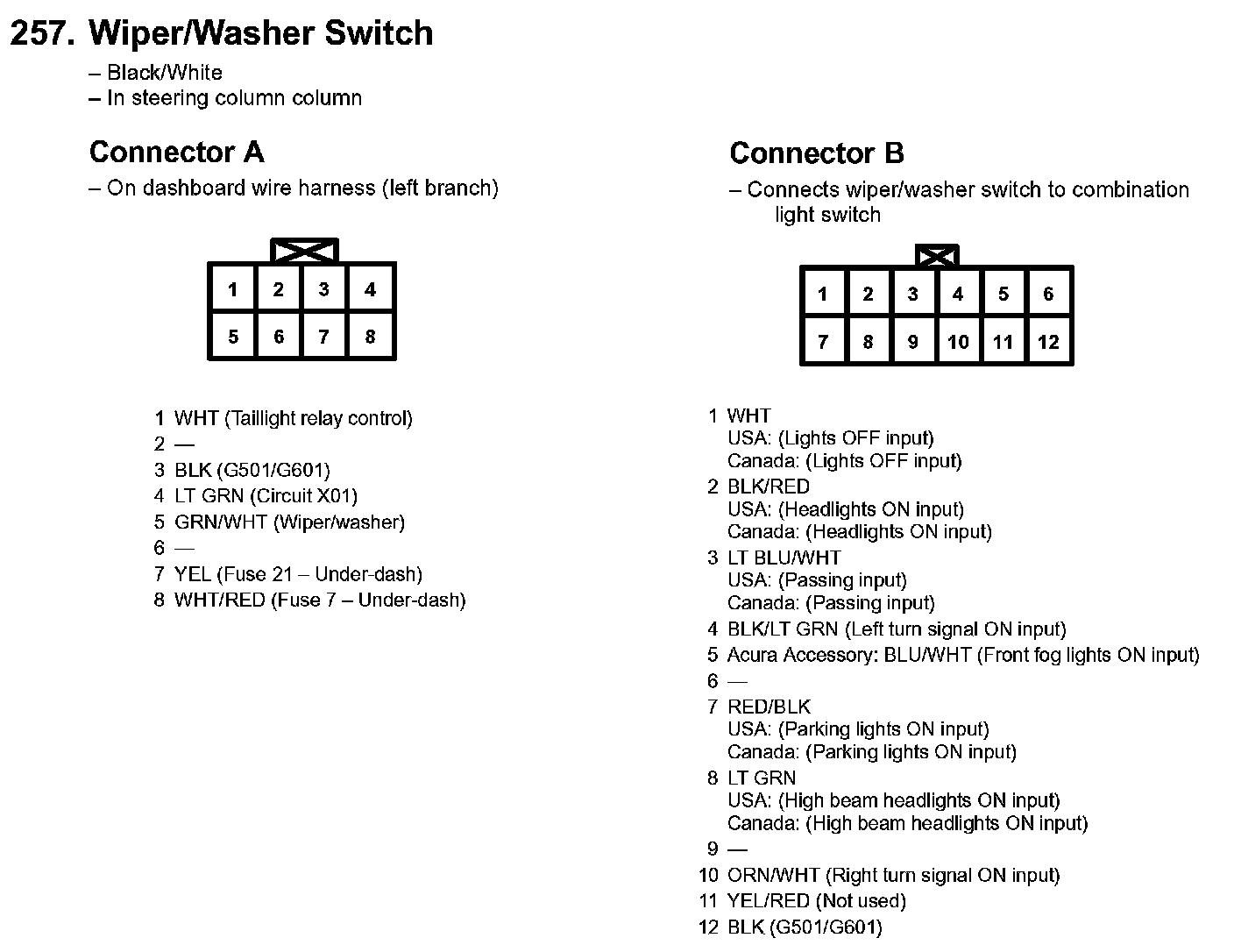 257. Wiper/Washer Switch: