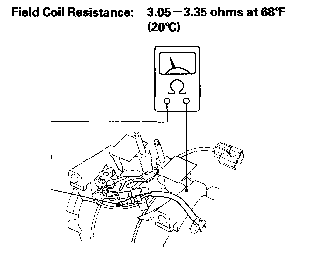 5. Check resistance of the field coil. If resistance is not within specifications, replace the field coil.