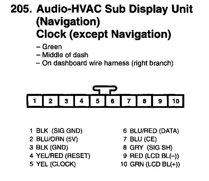 Audio-HVAC Sub Display Unit (Navigation), Clock (except Navigation):