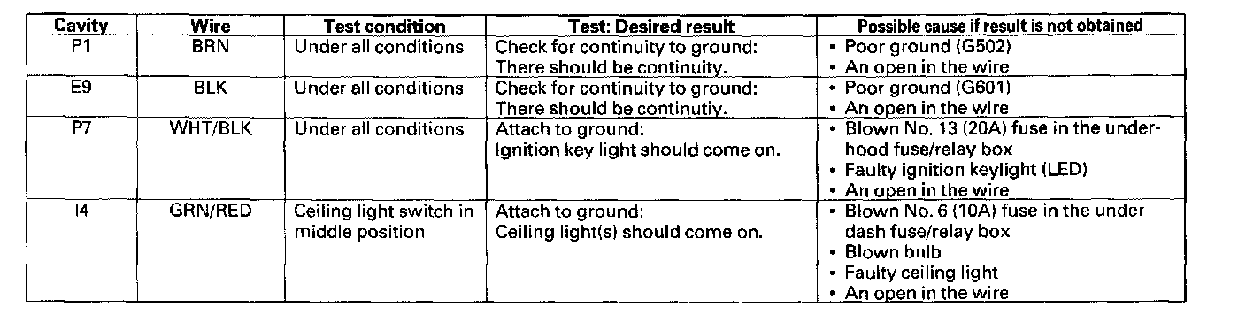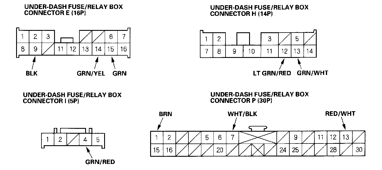 6. Reconnect the connectors to the under-dash fuse/relay box, and make these input tests at the appropriate connectors on the under-dash fuse/relay box.