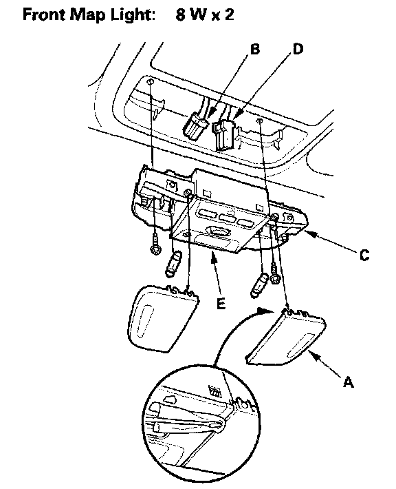 4. Disconnect the 10P connector (D) from the ambient light (E).