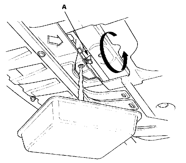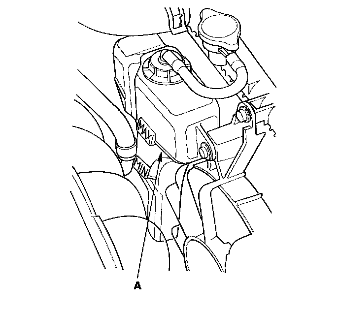6. Fill the reserve tank to the MAX mark (A) with Honda All Season Antifreeze/Coolant Type 2 (P/N 0L999-9001).