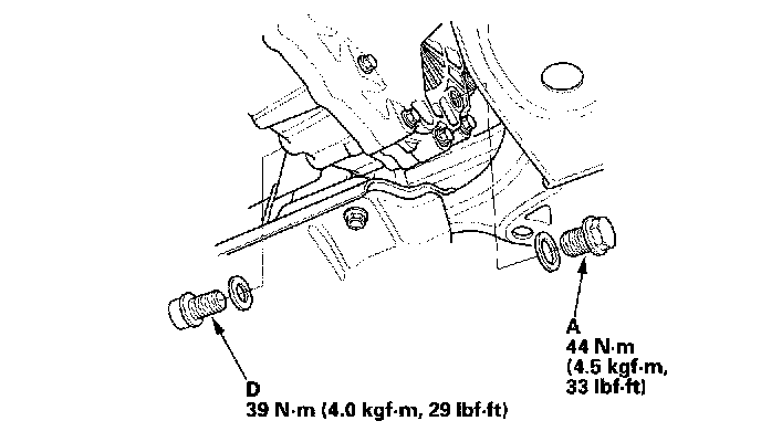 5. Install the drain plug with a new drain plug washer (P/N 90403-RAR-M000), and refill the transmission fluid to the proper level.
