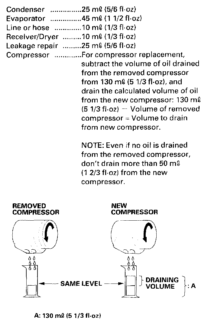 A/C Refrigerant Oil ReplacementRecommended PAG oil: KEIHIN SP 10