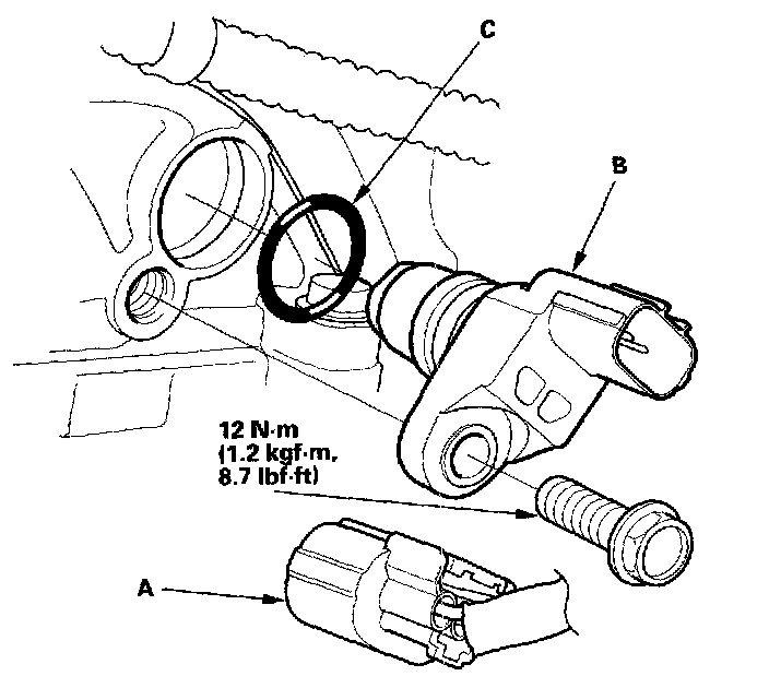 5. Install the sensor in the reverse order of removal with a new O-ring (C).