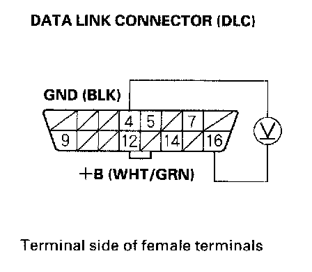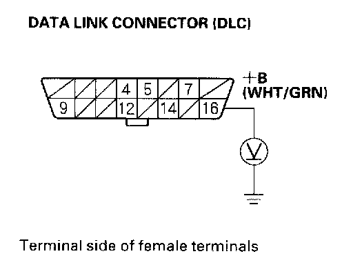1. Measure voltage between DLC terminal No.16 and body ground.