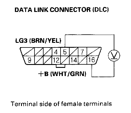 3. Measure voltage between DLC terminals No.5 and No.16.