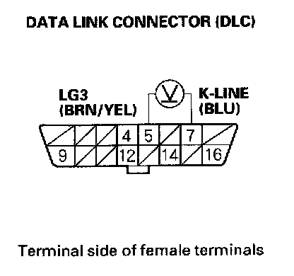 15. Measure voltage between DLC terminals No.5 and No.7.