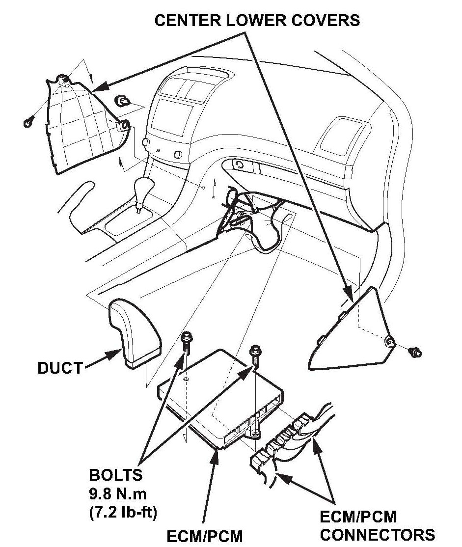 1. Remove the center lower covers and inspect the ECM/PCM.