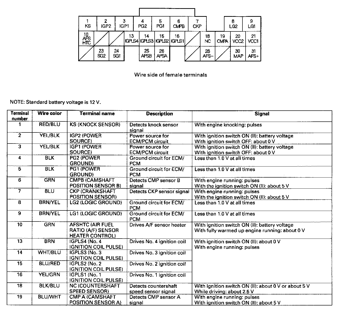ECM/PCM Inputs And Outputs At Connector E (31P) Part 1: