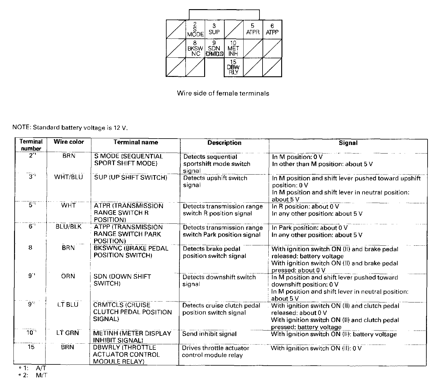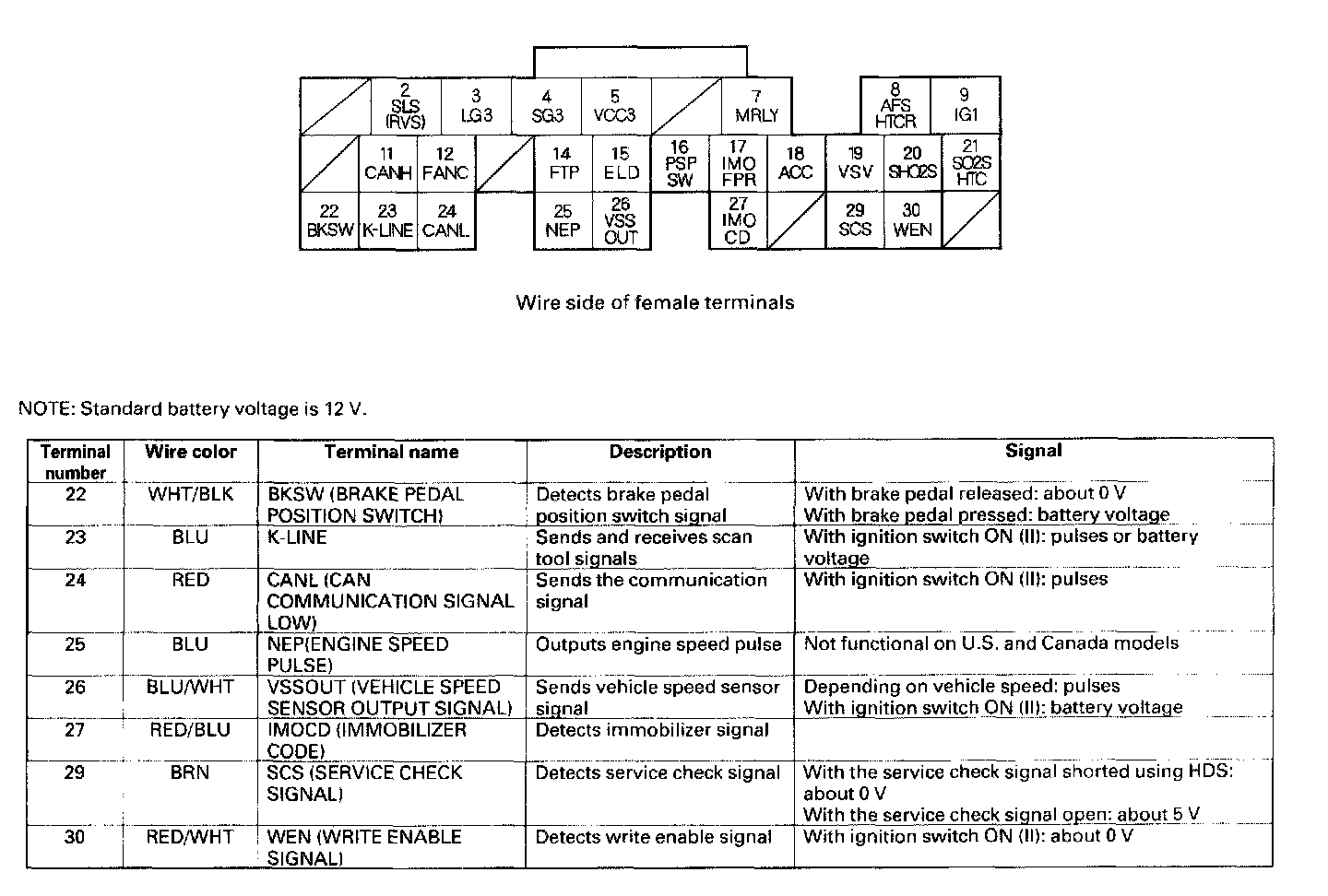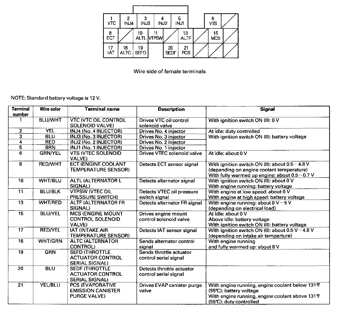 PCM Inputs And Outputs At Connector C (22P) Part 2:
