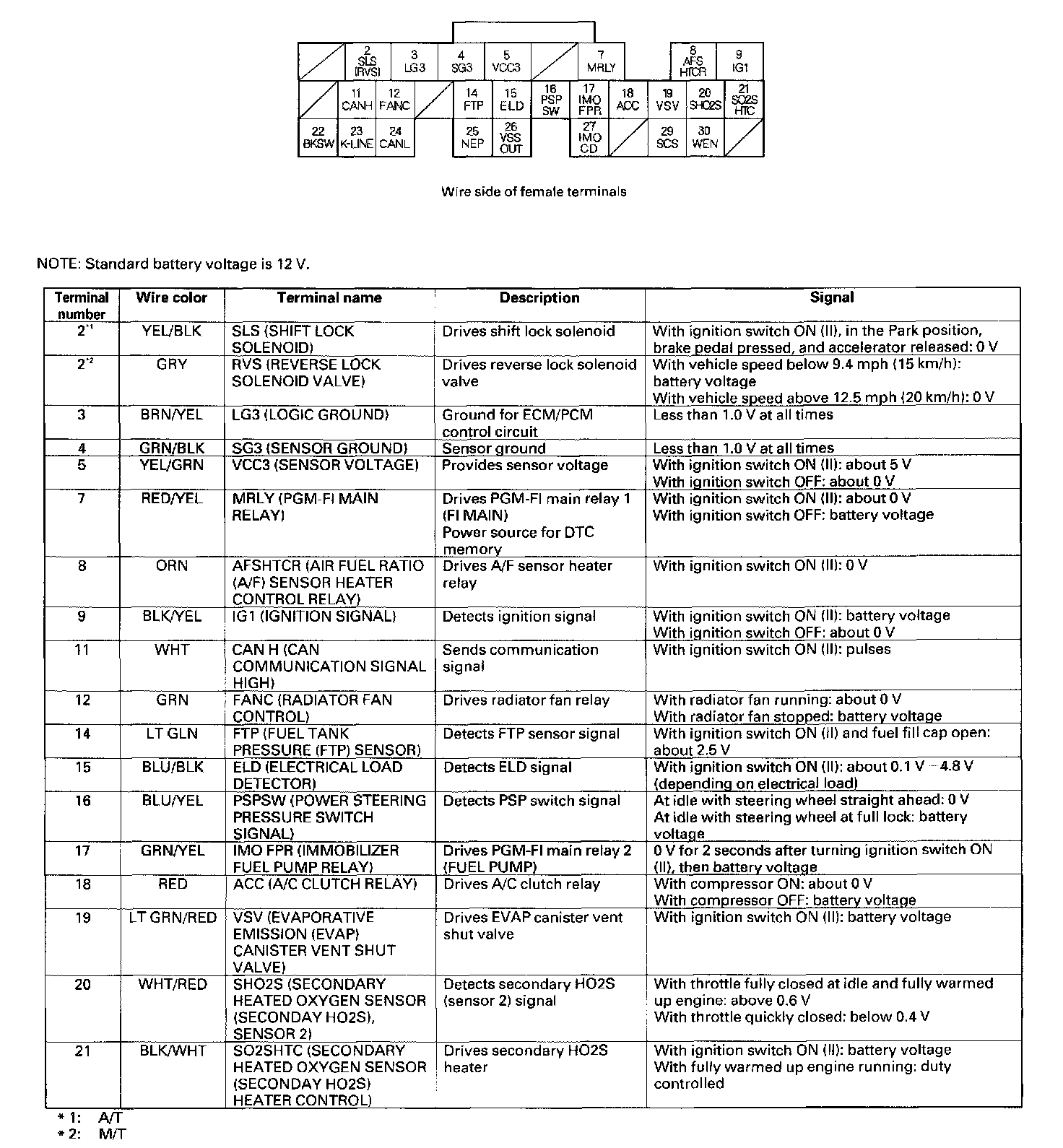 PCM Inputs And Outputs At Connector C (22P) Part 1: