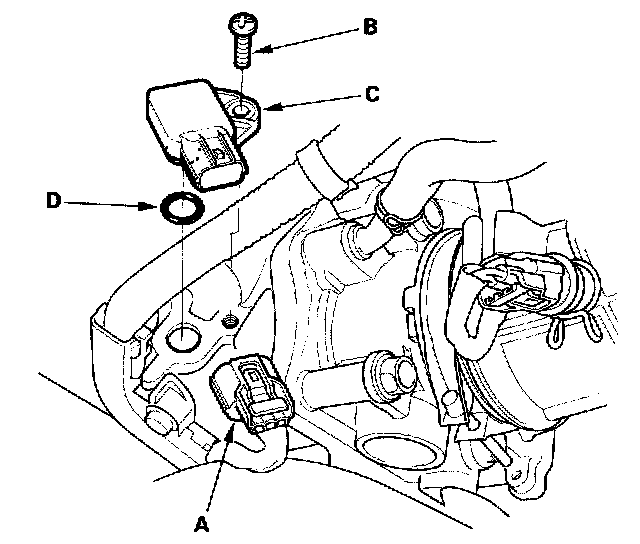 4. Install the sensor in the reverse order of removal with a new O-ring (D).