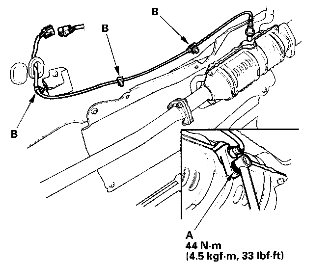 3. Remove the secondary HO2S (A), and the clips (B).