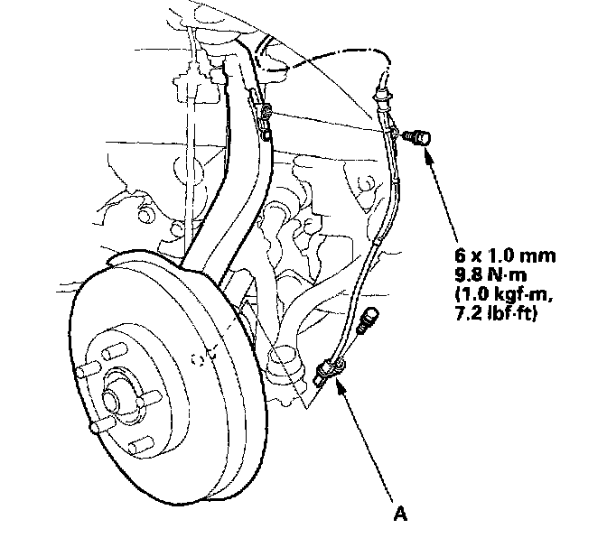 3. Remove the brake hose mounting bracket (A).