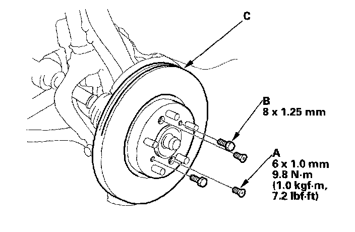 9. Remove the brake disc (C) from the knuckle.