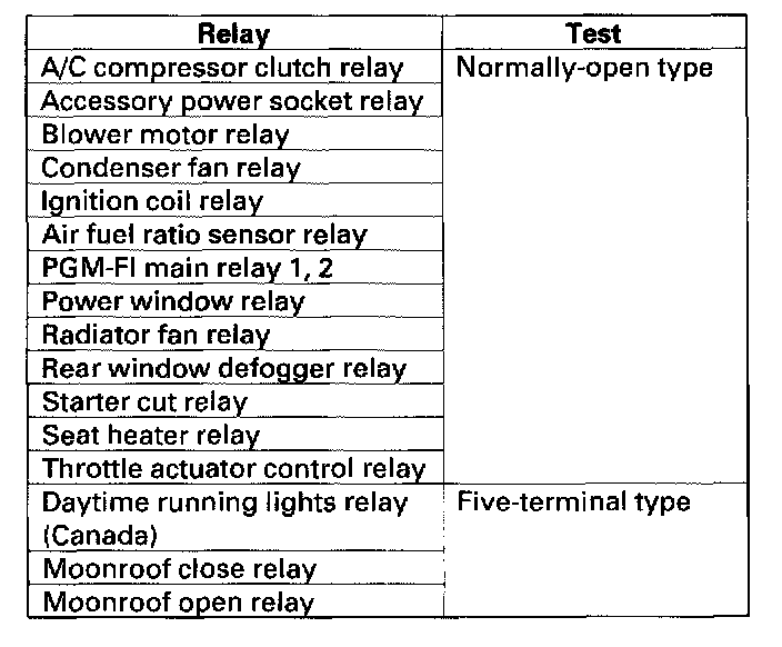 Power Relay TestUse this chart to identify the type of relay, then do the test listed for it.