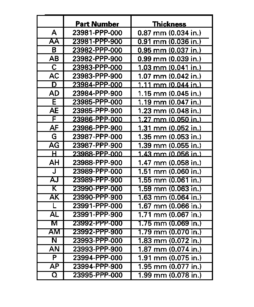 19. If necessary, install the 35 mm shim selected in step 17, then recheck the clearance.