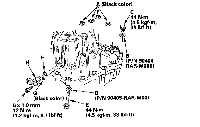 21. Install the new O-ring (F), plain washer (G), and the countershaft speed sensor (H).