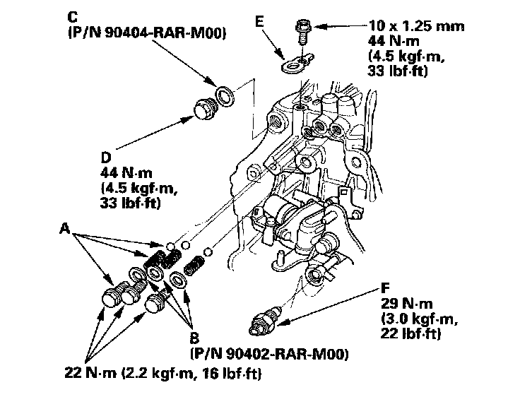 25. Install the back-up light switch (F) on the transmission housing.