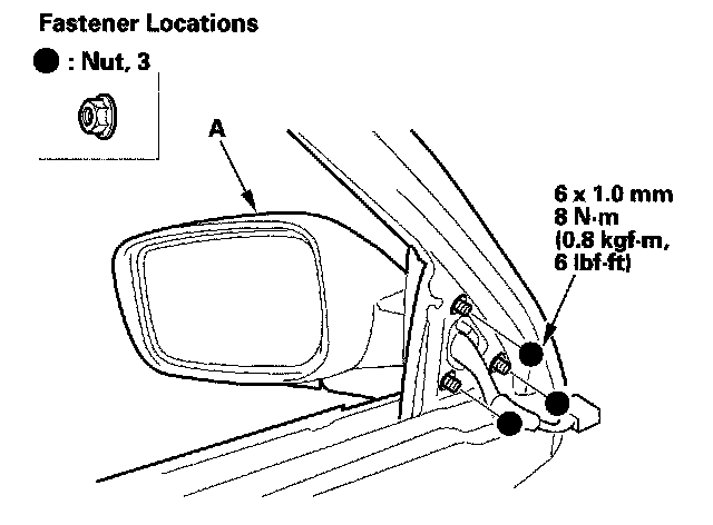 3. While holding the mirror (A), remove the nuts.